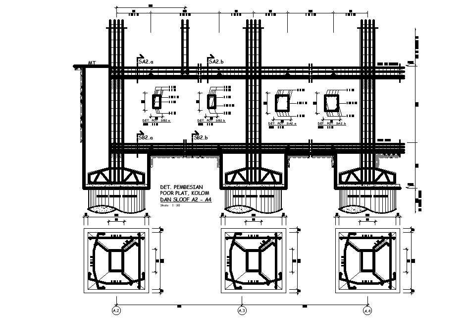 Footing cum column details are given for 64x18m office plan in this Autocad drawing file. The dimension of footing is 1.7x1.7m. The dimension of column is 200x300mm. For more details download the Autocad drawing file. Thank you for downloading the Autocad drawing file and other CAD program files from our website.