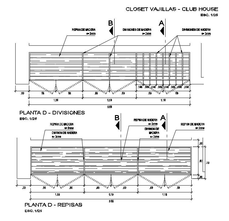 closets Elevation detailed CAD drawings are provided in this drawing file. The closet details are given in this cad file. This type of drawing is useful for Interior designers. Download the cad file now.