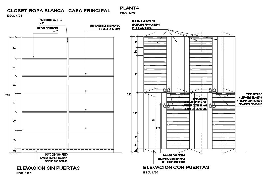 Principal room closets section and Elevation detailed CAD drawing. Download the cad file now.