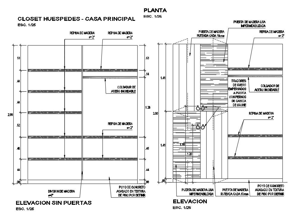Casa Principal room closets Elevation and section detailed drawing. Download the cad file now.