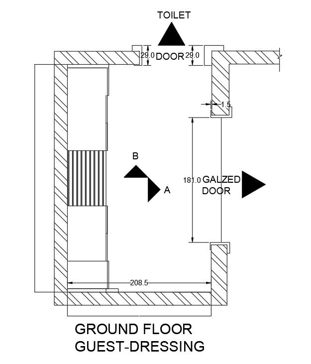AutoCAD plan for ground floor guest dressing wardrobe design