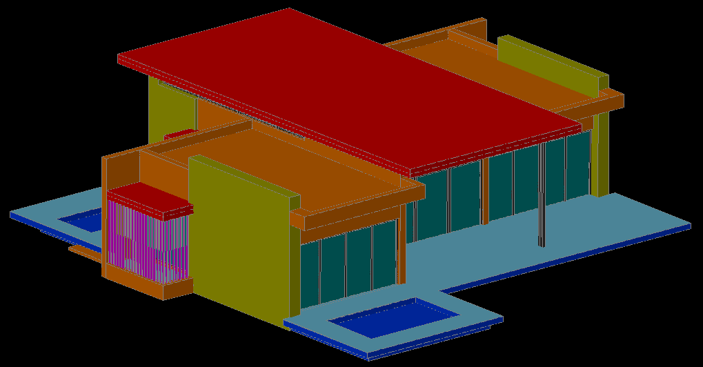 The DWG file includes detailed elements such as structural divisions, floor layout arrangements, and rendered exterior finishes. The clean geometry, extended rooflines, and accent walls highlight the minimalistic approach to villa architecture. The model’s design emphasizes natural light, balanced space utilization, and modern architectural proportions that are ideal for visualization and construction drawings.