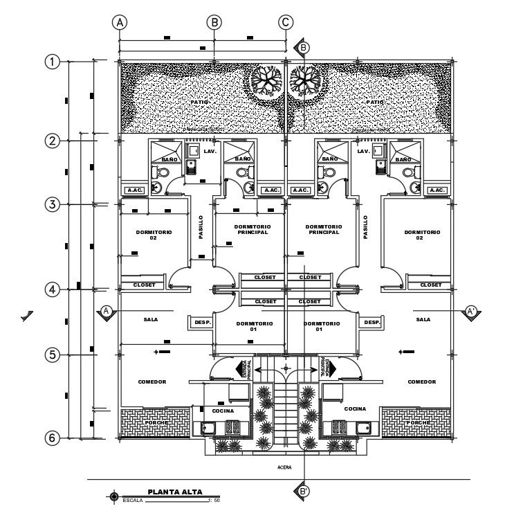 13x16m second floor house plan is given in this Autocad drawing file. This is G+ 1 house building. Kitchen, dining area, living hall, master bedroom with attached toilet, guest room, kid’s room and common bathroom is available. In this floor two houses are available. For more details download the Autocad file. Thank you for downloading the Autocad file and other CAD program files from our website.