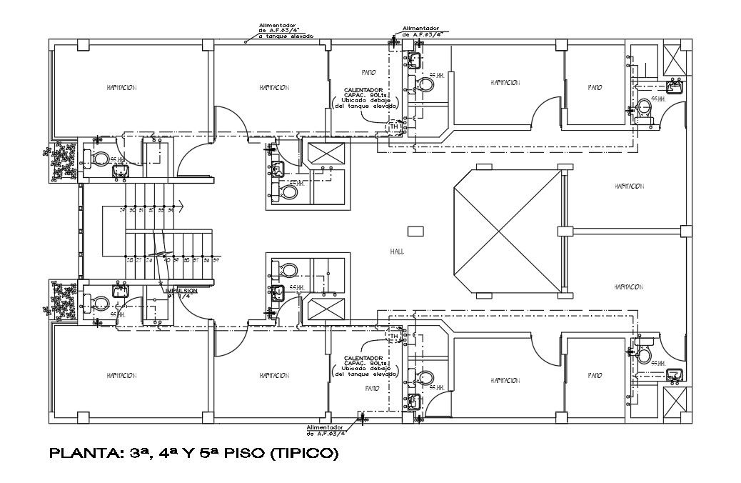16x10m second, third & fourth floor house plan is given in this Autocad drawing file.Download now.