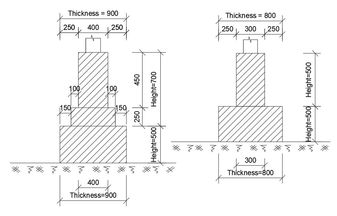 400mm and 800mm Foundation Thickness Detail CAD Drawing