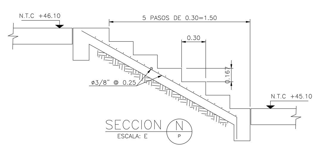 A section view of staircase is given in the form of 2D Autocad drawing model. Breadth of the thread is 300mm. Height of the riser is 167mm. Reinforcement details are specified in this model. For more details download the Autocad file. Thank you for downloading the Autocad file and other CAD program files from our website.