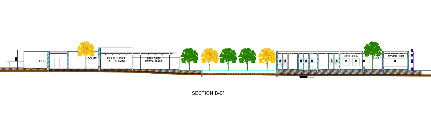 The club house building right side section CAD drawing which includes swimming pool, 60 seat people deck area, conference room, semi open restaurant, kitchen, changing room, kids room and gym detail dwg file. Thank you for downloading the Autocad drawing file and other CAD program files from our website.
