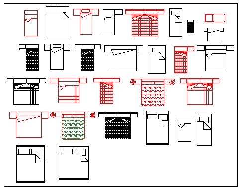 Here the Several beds 2D blocks design drawing in this auto cad file.