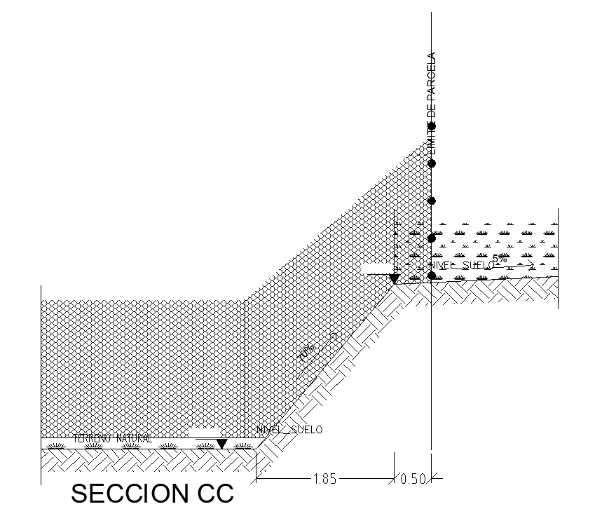 Section CC view of 20x20m wall layouts are given in this 2D AutoCAD DWG drawing file. This wall layout is given for plot. Centre portion is visible in this model. Plot, natural land, and other details are mentioned. For more details download the AutoCAD drawing file. Thank you for downloading the AutoCAD drawing file and other CAD program files from our website.