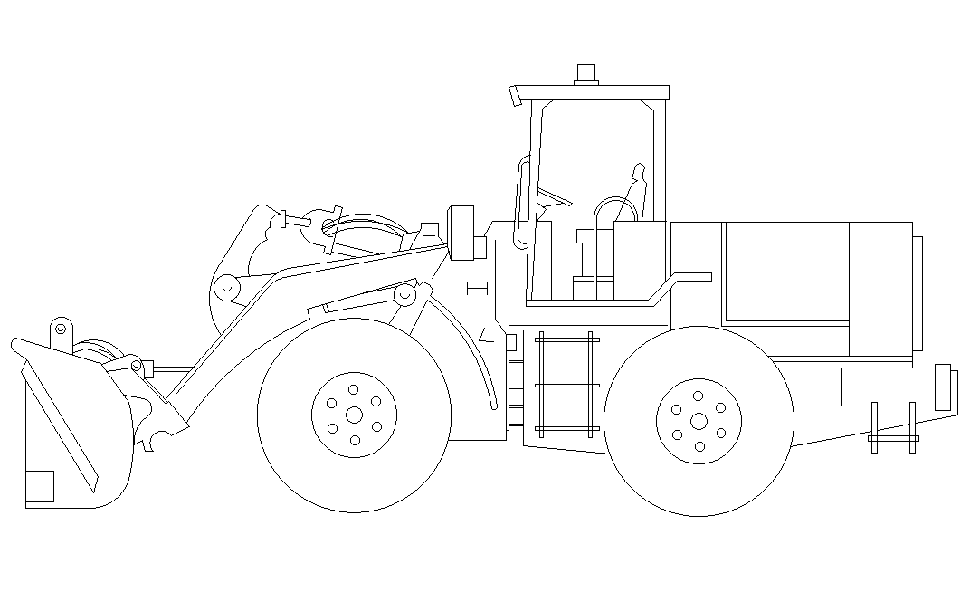 Front END loader 2D design is given in this AutoCAD drawing file. Download now.