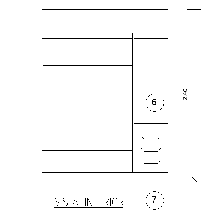 Interior View of 1600x2400mm Wardrobe AutoCAD Plan for Designers