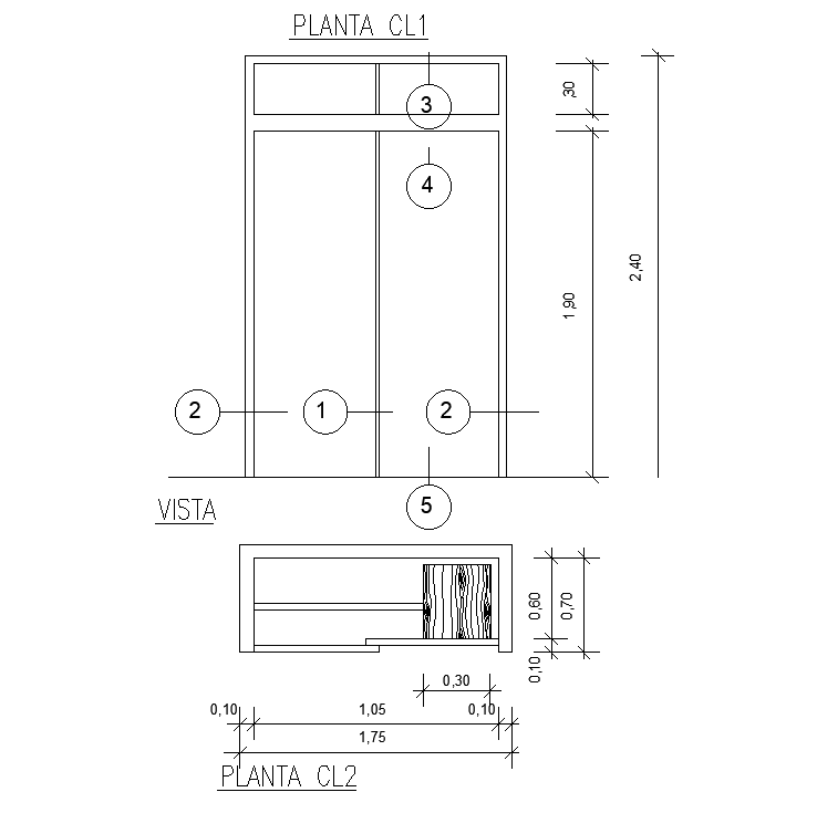 Explore this 1750x2400mm wardrobe plan in AutoCAD, designed for efficient interior storage solutions. With a height of 2400mm, it offers generous vertical space for organizing clothes and accessories. The drawing provides a complete interior layout, including shelves, hanging rods, drawers, and compartments, ensuring functional and practical usage. This DWG file, along with the Wardrobe Design With Three-side Elevation CAD Drawing, is ideal for architects, interior designers, and furniture planners looking to create modern, space-optimized wardrobe designs. It serves as a precise reference for professional design, customization, and planning of bedroom or dressing room interiors.