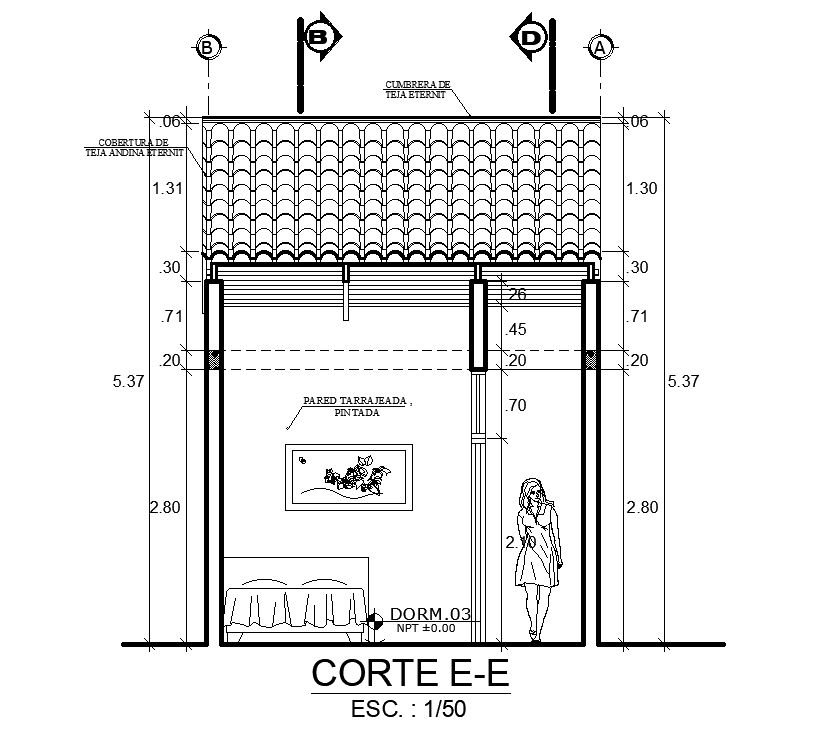 Right side section view of 26x4m house building is given in this AutoCAD drawing file.Download now.