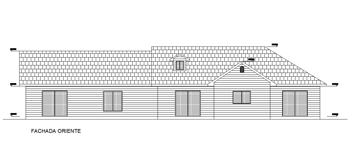 Back side elevation view of 23x13m house building is given in this Autocad drawing file. Download now.