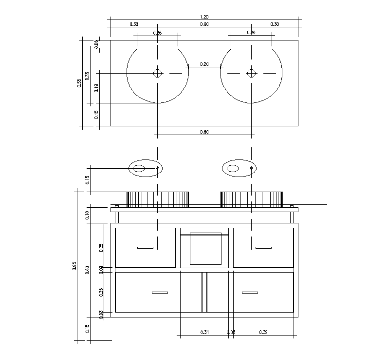 950mm height of the kitchen cub board elevation is given in this Autocad drawing file. In this, plan and elevation views are given. Measurement details are specified. For more details download the AutoCAD drawing file. Thank you for downloading the AutoCAD drawing file and other CAD program files from our website.