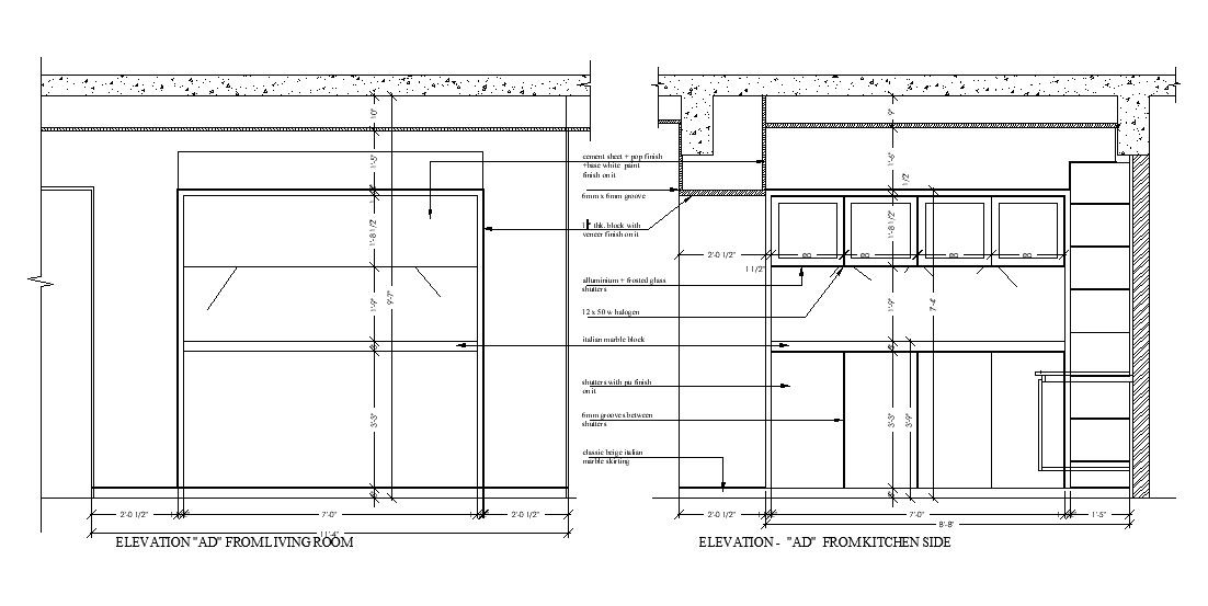 An elevation from kitchen side is given in this AutoCAD drawing file.Download now.
