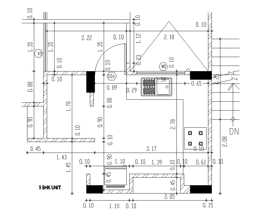 5x5m kitchen plan has been given in this AutoCAD drawing file. This is given for 3bhk house plan. Kitchen, store room, and wash area is available. Measurement details are given in this model.For more details download the AutoCAD drawing file. Thank you for downloading the AutoCAD drawing file and other CAD program files from our website.
