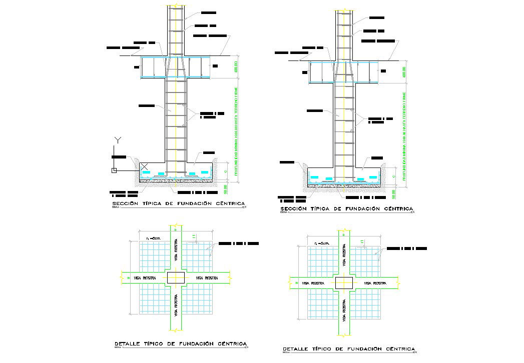 Foundation structure detail autocad dwg files. Include plan, elevations and section.