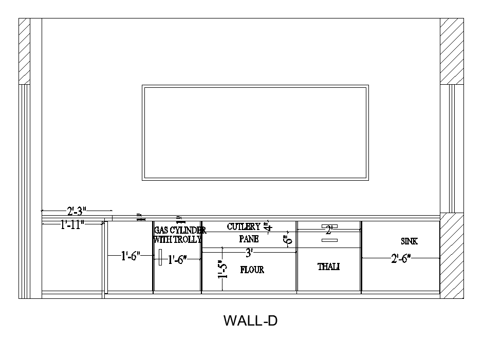 Right side section view of 23’x14’ kitchen is given in this Autocad drawing file. The total height of the kitchen is 9’. Dish wash areas, gas burner, fridge location, sink, and oven location is mentioned in this drawing model. Servant toilet is available in this plan.For more details download the AutoCAD drawing file. Thank you for downloading the AutoCAD drawing file and other CAD program files from our website.