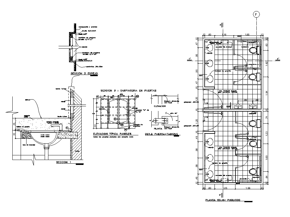 The public toilet layout plan AutoCAD drawing which consist liquid soap dispenser, waste bin, concrete slab, tiled and painted, and wooden frame 3 / 4''x2 '' screw, typical elevation panels, and all panels painted with matt enamel detail dwg file. Thank you for downloading the Autocad drawing file and other CAD program files from our website.