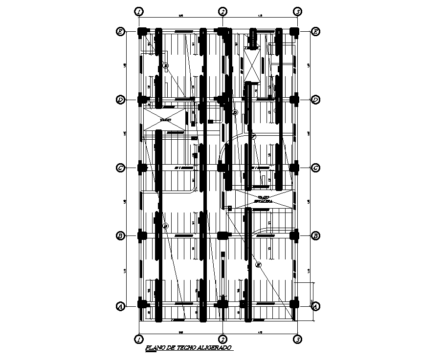Column layout of 10x17m single family house plan is given in this AutoCAD drawing model.Download now.