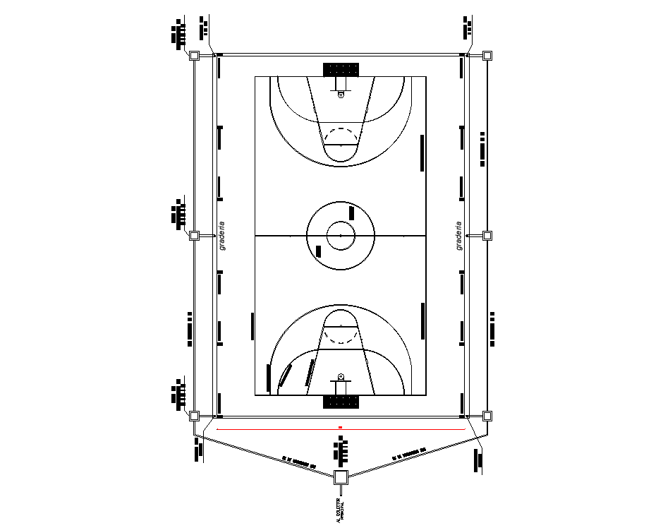 Marking layout of 22x32m basketball court plan is given in this AutoCAD drawing model.Download now.