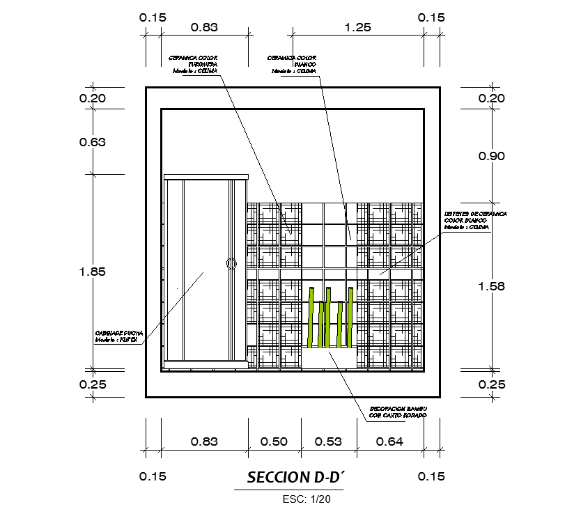 Front section view of 2.8x2m bathroom is given in this AutoCAD drawing model.Download the Autocad model.