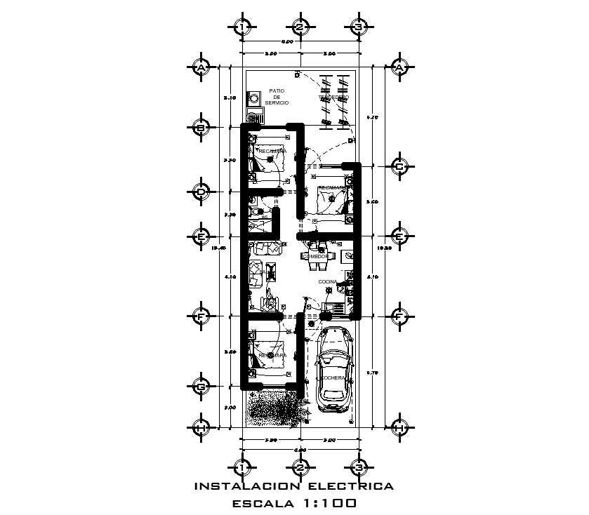 Electrical installation of 6x19m house plan is given in this 2D AutoCAD drawing model. This is single story house building. Car parking, kitchen, dining area, living hall, patio service, master bedroom, guest room, kid’s room, and garden is available. For more details download the AutoCAD drawing file. Thank you for downloading the AutoCAD drawing file and other CAD program files from our website.
