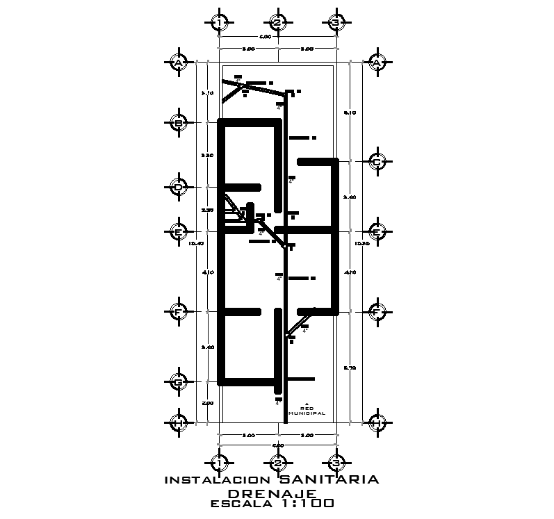 Sanitary water installation of 6x19m house plan is given in this 2D AutoCAD drawing model.Download the Autocad model.