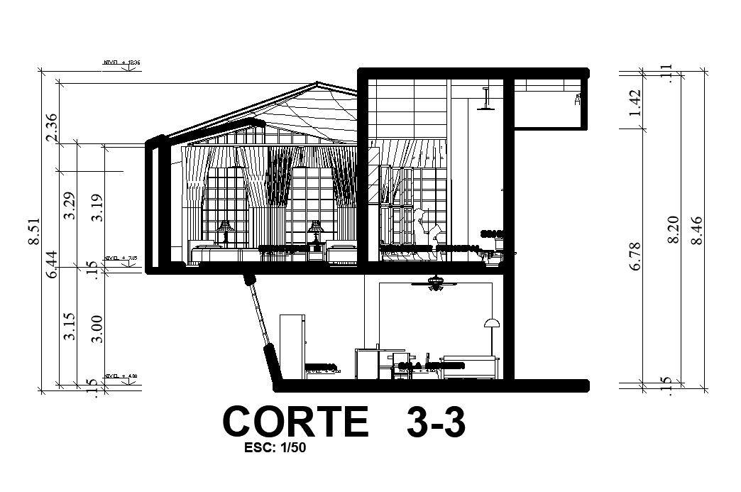 Left side section view of 13x7m house building is given in this AutoCAD DWG drawing file.Download now.
