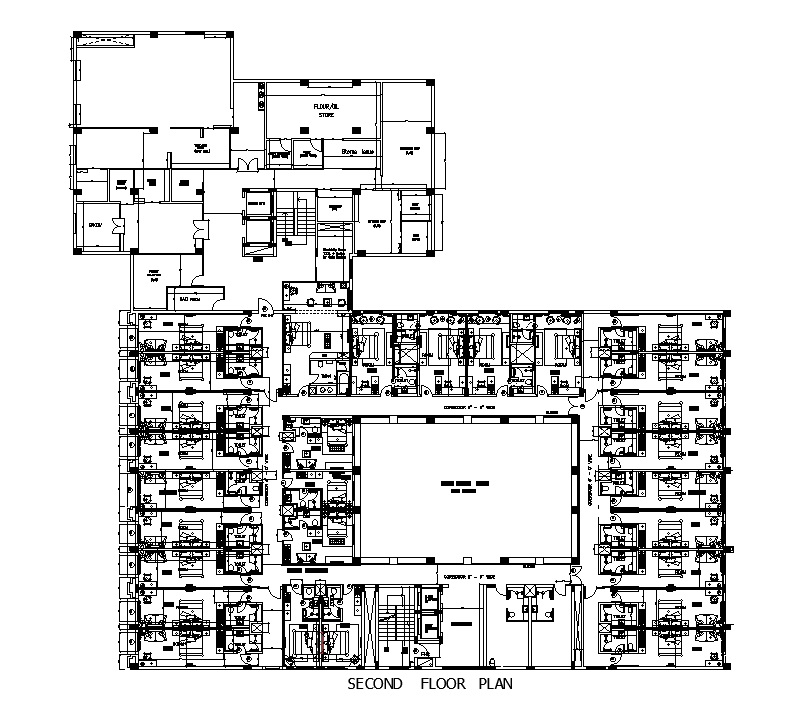 Hotel Building Second Floor Drawing Download DWG File