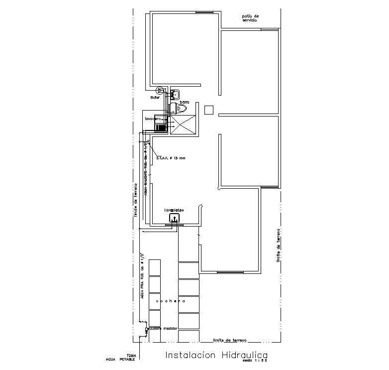 Plumbing layout of 7x17m house plan is given in this AutoCAD drawing file. Download the Autocad model.