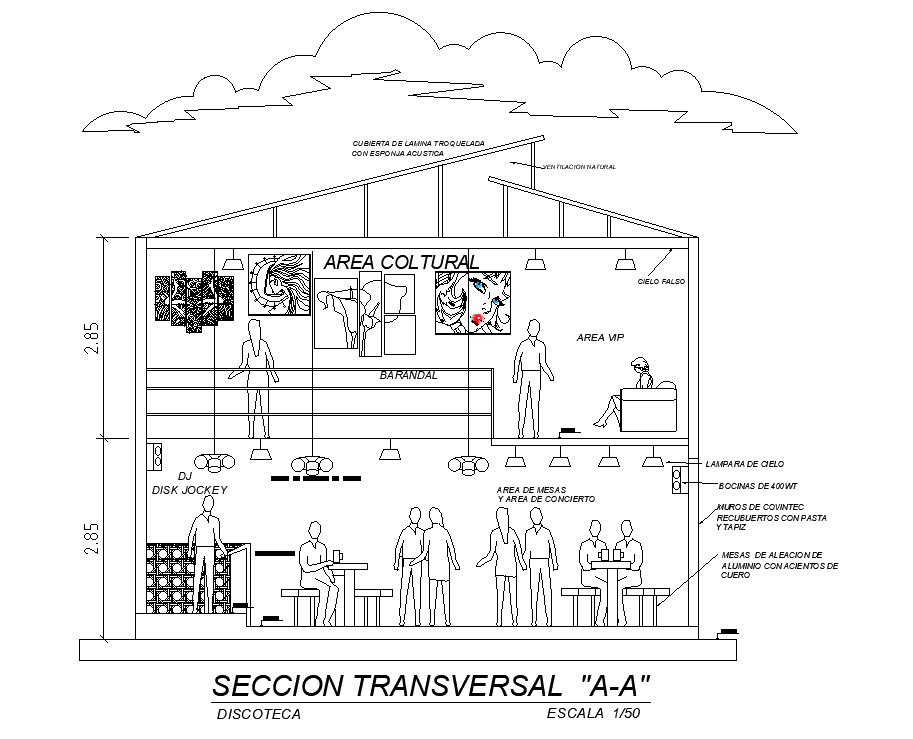 Front section view of 16x36m Restaurant building is given in this AutoCAD drawing model. This is G+ 1 restaurant building. Kitchen, dining area, gent’s toilet, ladies toilet, service area, and bar is available on the ground floor.Manager room, secretary room, gent’s toilet, ladies toilet, and patio is available on the first floor. For more details download the AutoCAD drawing file. Thank you for downloading the AutoCAD drawing file and other CAD program files from our website.