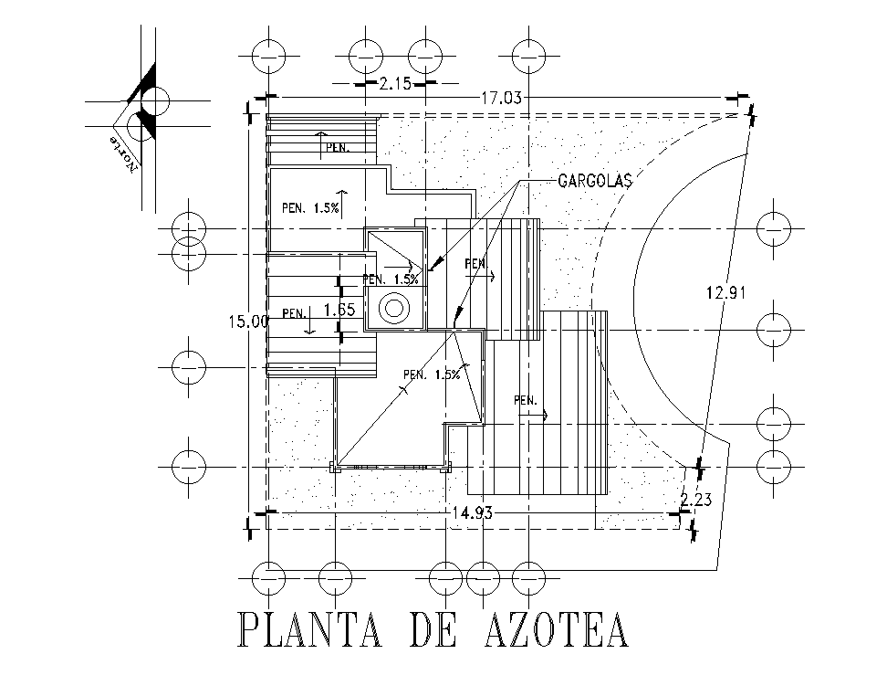 Roof plan of 9x10m villa house plan is given in this 2D AutoCAD drawing model.Download now.