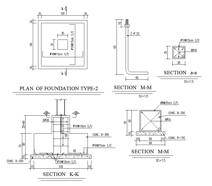 The RCC column size 120X120 mm size of column footing foundation plan and section drawing described in this AutoCAD file. this file consists of reinforcement steel bar detail given and dimensions specifications in dwg file. Thank you for downloading the AutoCAD file and other CAD program files from our website.