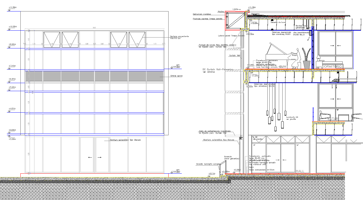 Aluminum curtain building panel detail in autocad dwg files. Include plan, elevations and sections