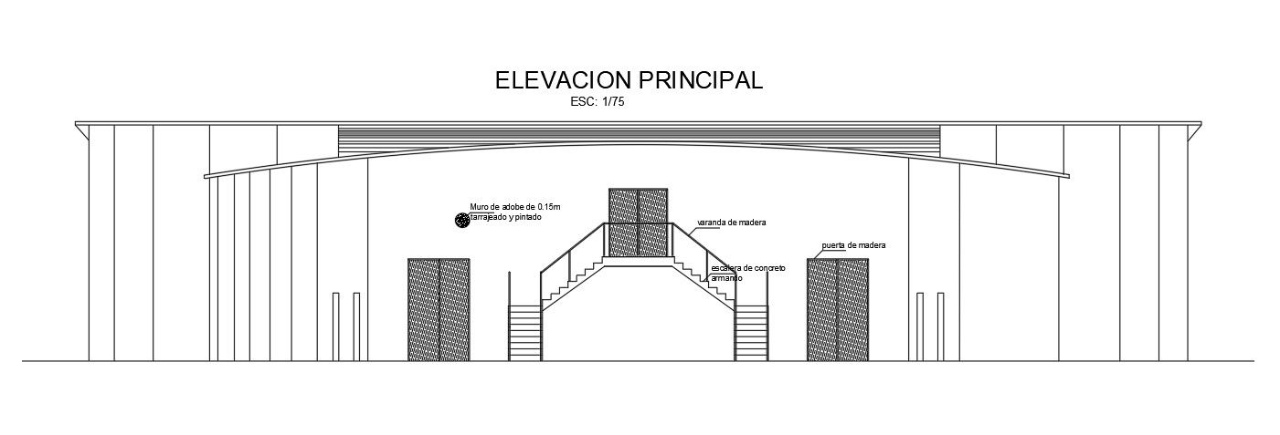 Front elevation view of 30x30m community hall plan is given in this AutoCAD model.Download now.
