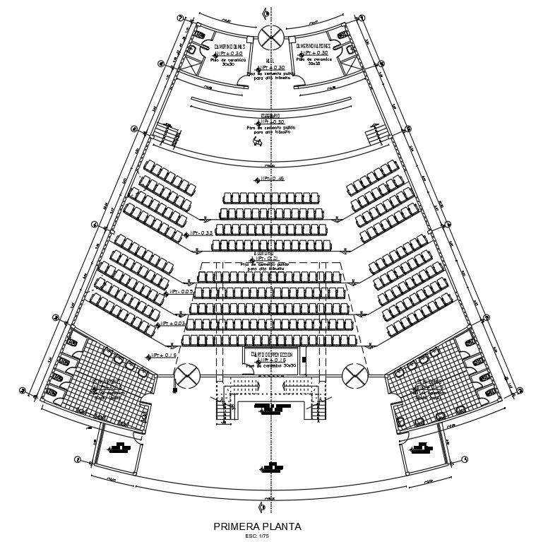 30x30m first floor community hall plan is given in this AutoCAD model.Download now.