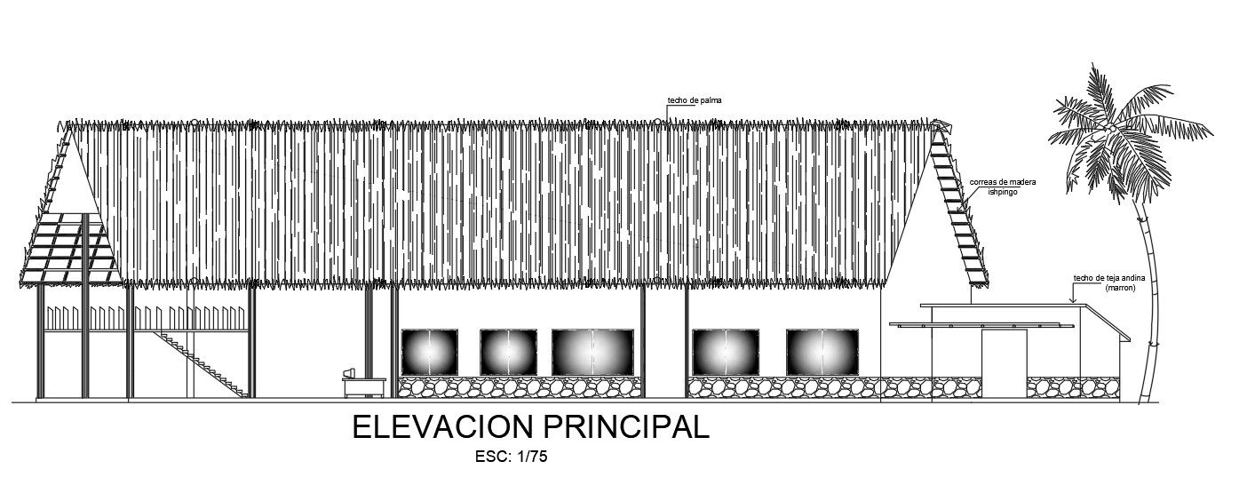 An elevation view of 50x10m office building is given in this AutoCAD drawing model.Download now.