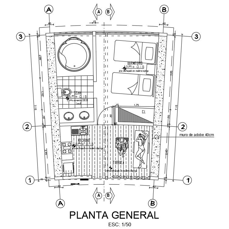 6x7m house plan is given in this AutoCAD drawing model. This is single story & 1bhk house plan. Kitchen, living area, master bedroom and common bathroom are available. For more details download the AutoCAD drawing file. Thank you for downloading the AutoCAD drawing file and other CAD program files from our website.