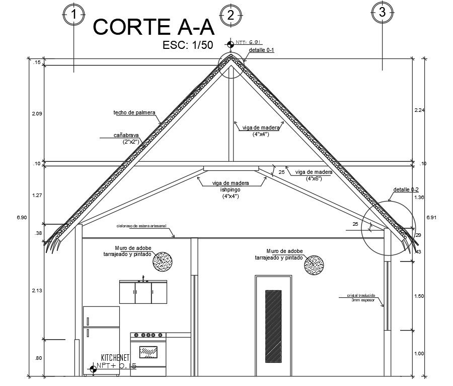 Front section view of 6x7m house building is given in this AutoCAD drawing model.Download the Autocad model.