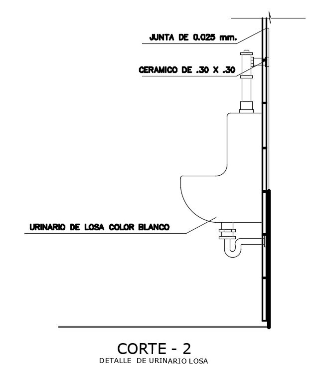 A section view of urinal is given in this AutoCAD drawing model. Joint detail is given in this model. This type of urinal can be used for house, hotel, hospital, office and other places. For more details download the AutoCAD drawing file. Thank you for downloading the AutoCAD drawing file and other CAD program files from our website.
