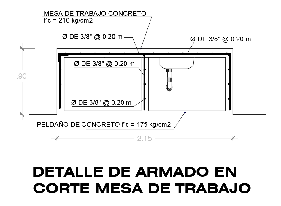 2.15x0.55m Concrete Shelf AutoCAD DWG with Sink and Burner