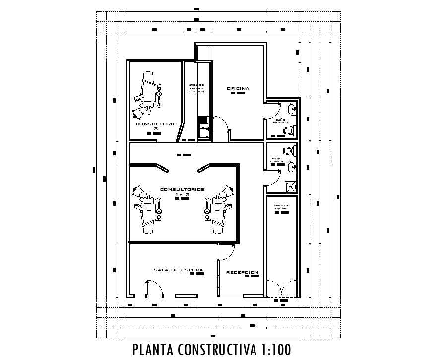 Construction floor plan of 8x13m hospital is given in this AutoCAD drawing model. Download now.