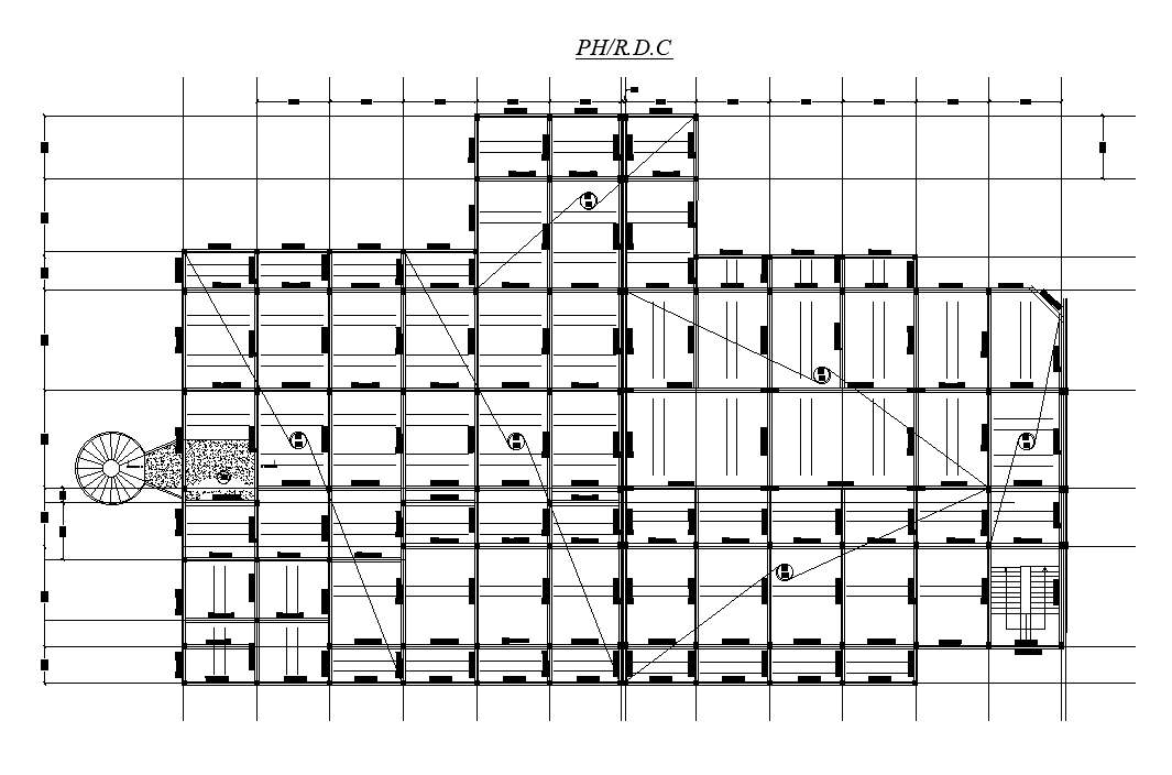 Column dimension detail of 50x32m shopping complex plan is given in this AutoCAD drawing model.Download now.