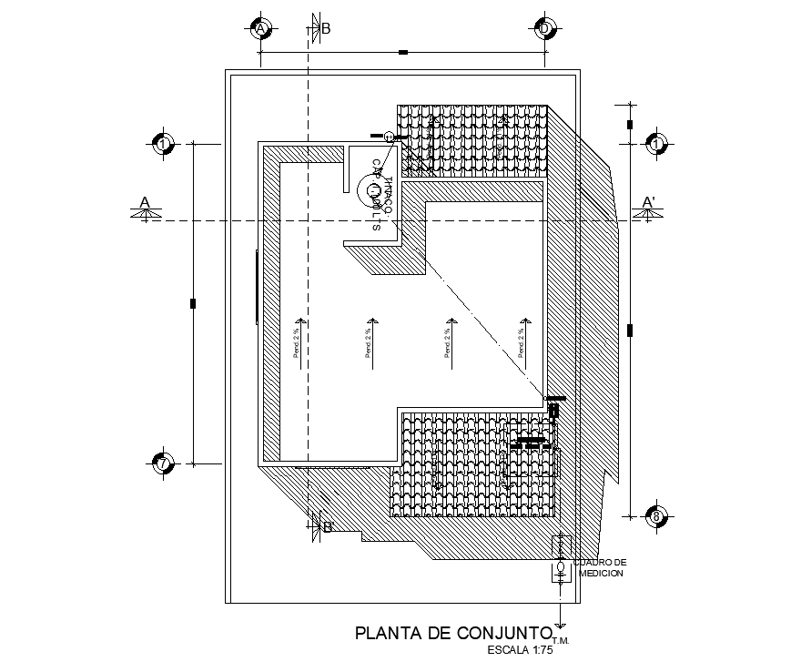 Roof plan layout of 8x10m house plan has been given in this AutoCAD drawing model. Download now.