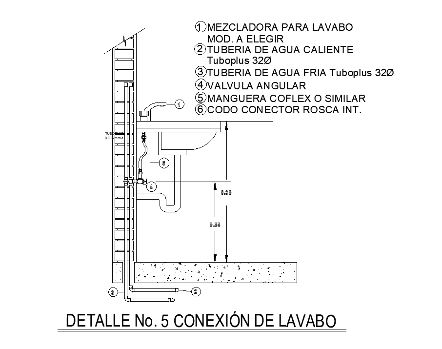 8x12m house plan of wash basin connection detail drawing is given in this AutoCAD model. Wash basin is given at the 0.8 height from the ground level. Component details are given in this file. For more details download the AutoCAD drawing file. Thank you for downloading the AutoCAD drawing file and other CAD program files from our website.