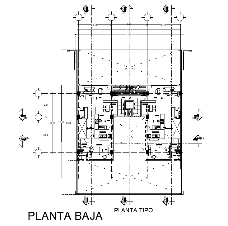 20x27m apartment first floor plan is given in this AutoCAD drawing model. Download now.
