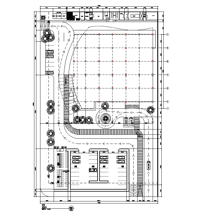 Column layout of 70x110m mother & child hospital ground floor plan is given in this AutoCAD drawing model.Download now.