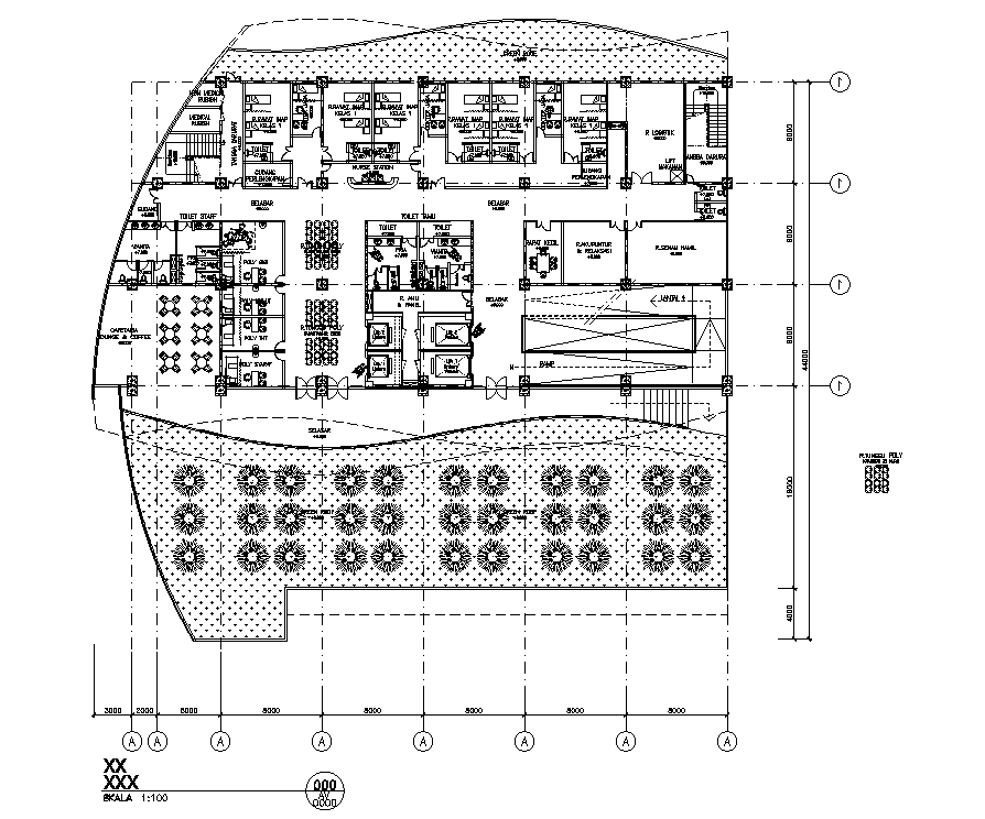 70x110m mother & child hospital third floor plan is given in this AutoCAD drawing model. Download the Autocad model.